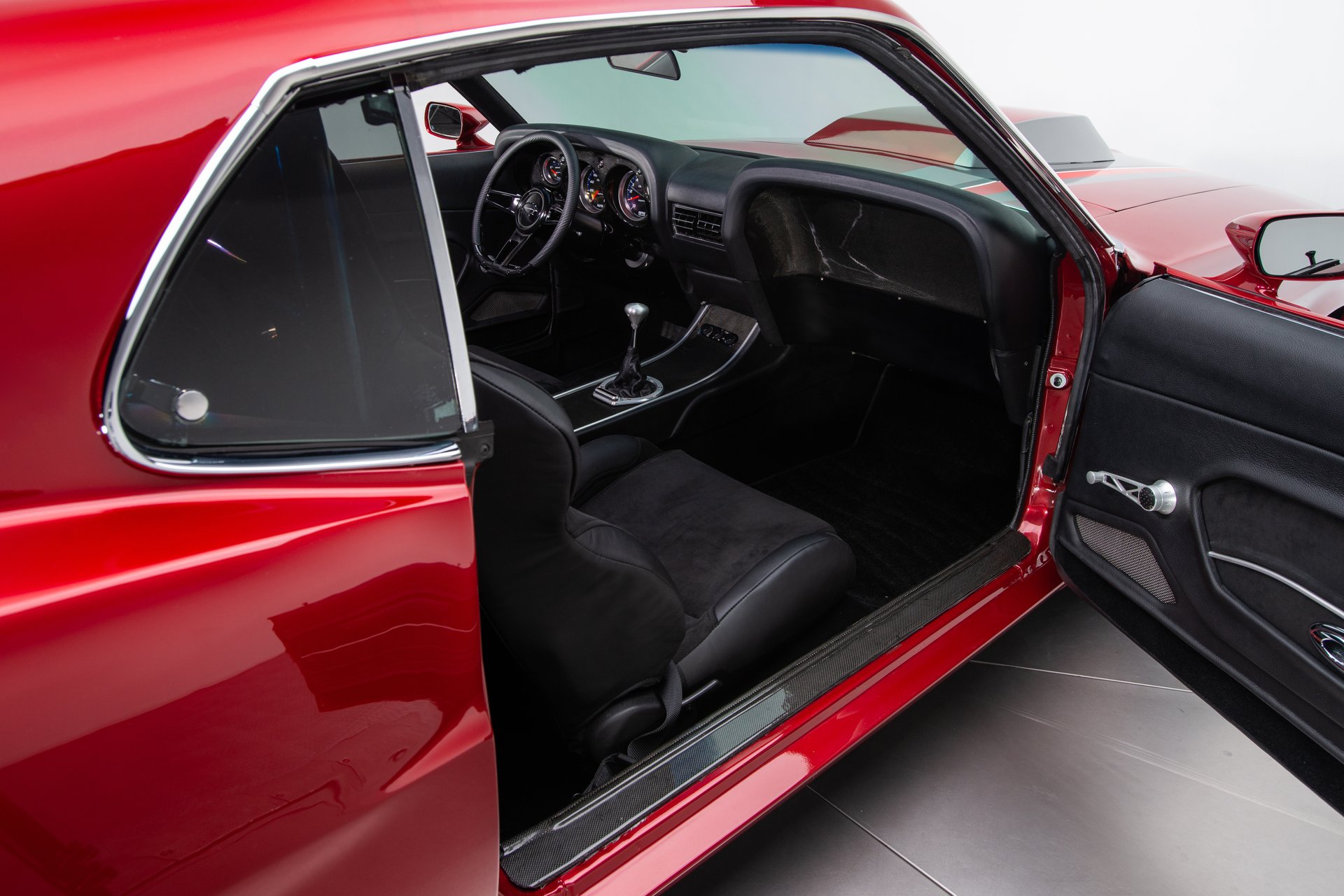 The tasteful customization doesn’t end at the doors. Step inside, and you’ll find a truly gorgeous cabin, fit for a tourer. The old seats have been pulled out and replaced with suede and leather Corbeau buckets, replete with 4-point Sparco harnesses. New Auto Meter dials have been fitted in a carbon-fiber panel, while Vintage Air ensures a comfortable atmosphere. A tiltable wheel by Billet Specialties is flanked by a Lokar shifter, and aluminum pedals. For safety, a four-point roll bar has also been added. The price of this little piece of heaven? Just shy of $140K. Not a bad price, in our book.