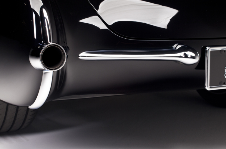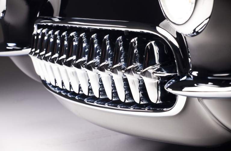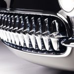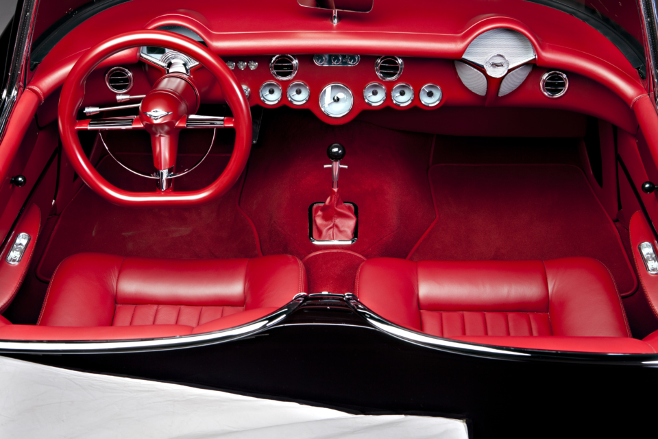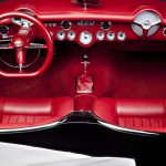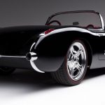 The car was originally bought by designer Dave Kindig’s father-in-law, Richard Cox, in 1965, putting it on show around SLC until the 1980s, when it was shelved. The fiberglass body of the C1 needed replacement, so Kindig-It flew in the technicians from Corvette Image, of Gresham, Oregon. The old front clip was replaced, as well as the passenger rear quarter and lower valance. The bumpers were also tucked, for a more subtle, sleeker look. The emblems and badges were shaved, and the emblematic chrome of the 50s was redone by Ogden Chrome. The car was then given a brand new Art Morrison chassis, complete with independent suspension. The Corvette’s wheels were replaced with brand new Billet Specialties wheels, complete with Wilwood brakes. The interior has been refinished in oxblood, and Vintage Air A/C was added, as well as Dakota Digital gauges.
