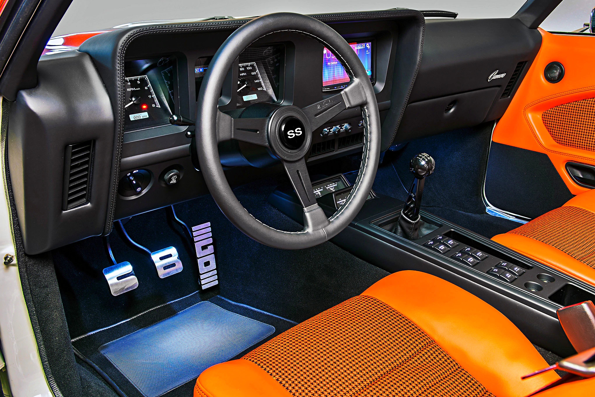 Inside, the Camaro features late-model Cadillac seats, made possible by adding the new seat mounts. The seats feature integral harnesses, boosting the car’s safety. These seats were finished in orange, and look stunning. While the interior features all the tech that you would expect to see, plus a fantastic keyless entry system that also controls the trunk. No expenses were spared in the production of this car and it shows. A truly fantastic Camaro, you can learn more about it here.