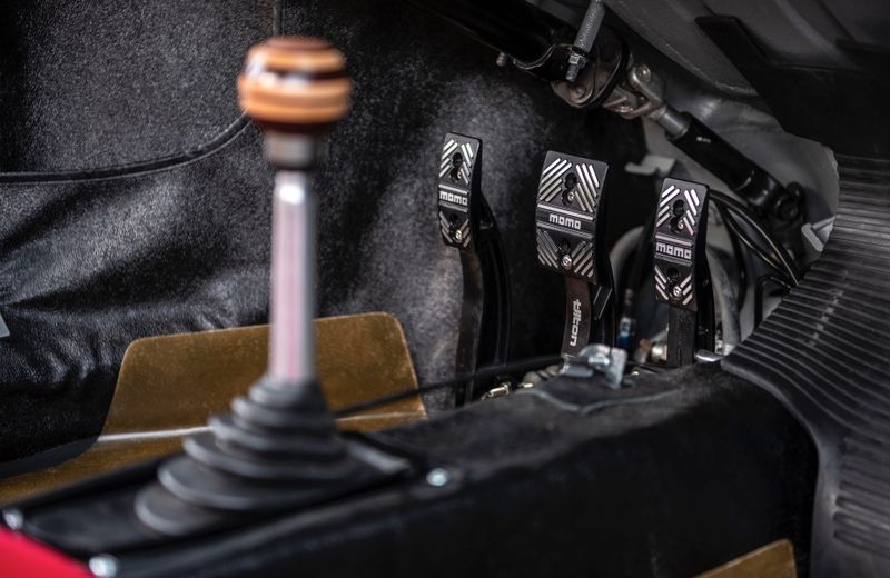The radical blend of old and new continues inside. The Momo seats and pedals are pure track day beauty, but the authentic Porsche styling is continued with the wooden shifter knob.