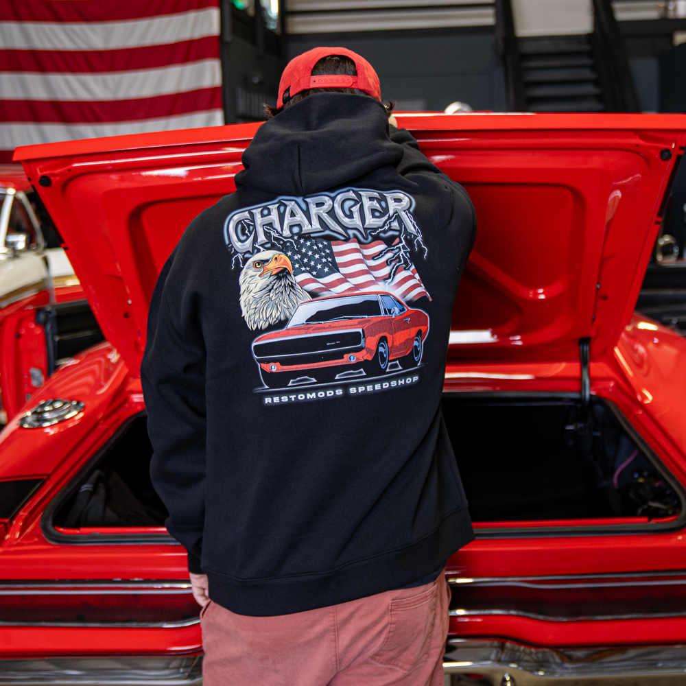 The American Charger Hoodie delivers cozy vibes with its brushed fleece interior and oversized silhouette. Whether you’re wrenching in the garage or just vibing on a chilly day, this hoodie’s heavyweight feel and relaxed unisex fit make it your new go-to. Just a heads-up—the brushed interior can shed a bit, so keep the color layering game smart.