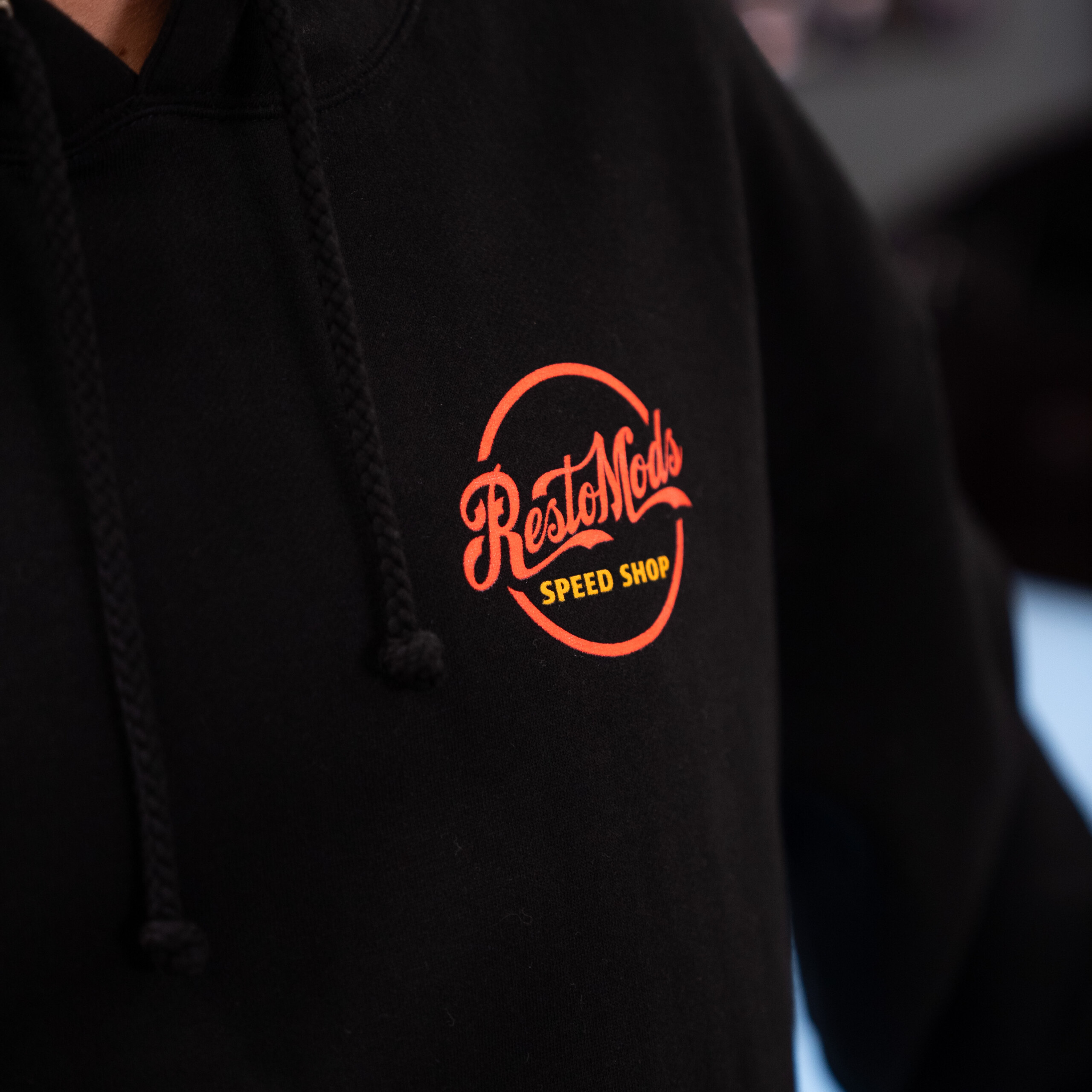 Elevate your style and showcase your passion for classic cars with our Big Eagle Hoodie. This black pullover hoodie features the striking red RestoMods logo on the front and a majestic swooping eagle landing on the RestoMods logo on the back. Perfect for car enthusiasts who want to combine comfort and a bold design, this hoodie is a standout piece in any wardrobe.