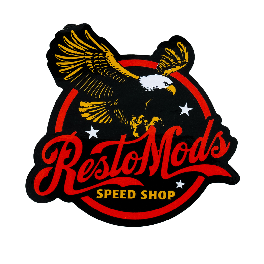 Upgrade your style with the Big Eagle Sticker. This 3-inch sticker showcases a vibrant, colorful bald eagle landing proudly on the red RestoMods logo. Made from durable waterproof and sunlight-proof vinyl, this sticker is perfect for both indoor and outdoor applications, letting you showcase your love for RestoMods on your car, toolbox, or anywhere else you want to make a statement.