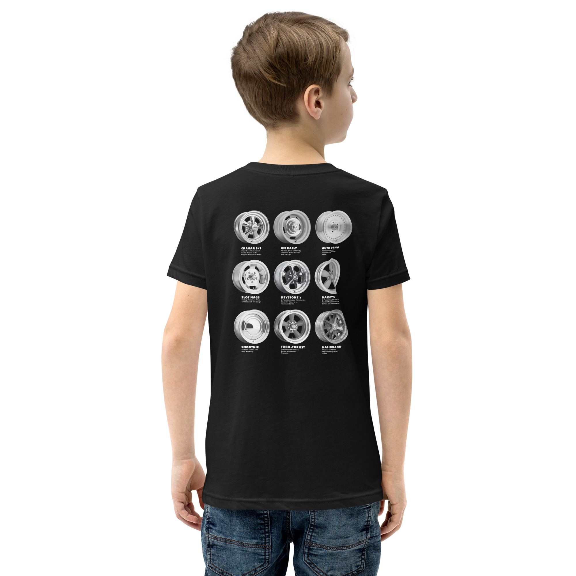 Upgrade your style with the Classic Wheels Youth Tee. This black and white tee brings a timeless, vintage-inspired look that’s perfect for young automotive enthusiasts. Available in sizes S-XL, it’s crafted from 100% combed and ring-spun cotton, while heather variations feature a cotton-polyester blend for added softness and durability.