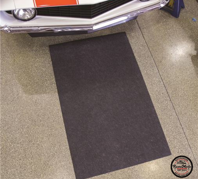 Made of super absorbent propylene fabric with a non-skid, non-penetrating back, this protective mat will put an end to stains and slippery spots on your garage floor. Absorbs up to 5 times its own weight, to soak up and contain leaks and spills from oil, gas, anti-freeze, brake fluid, hydraulic fluid and more. Measures 36” x 59”. Easy to clean; imply scrub with soap, hose off and hang dry. Made in the USA.