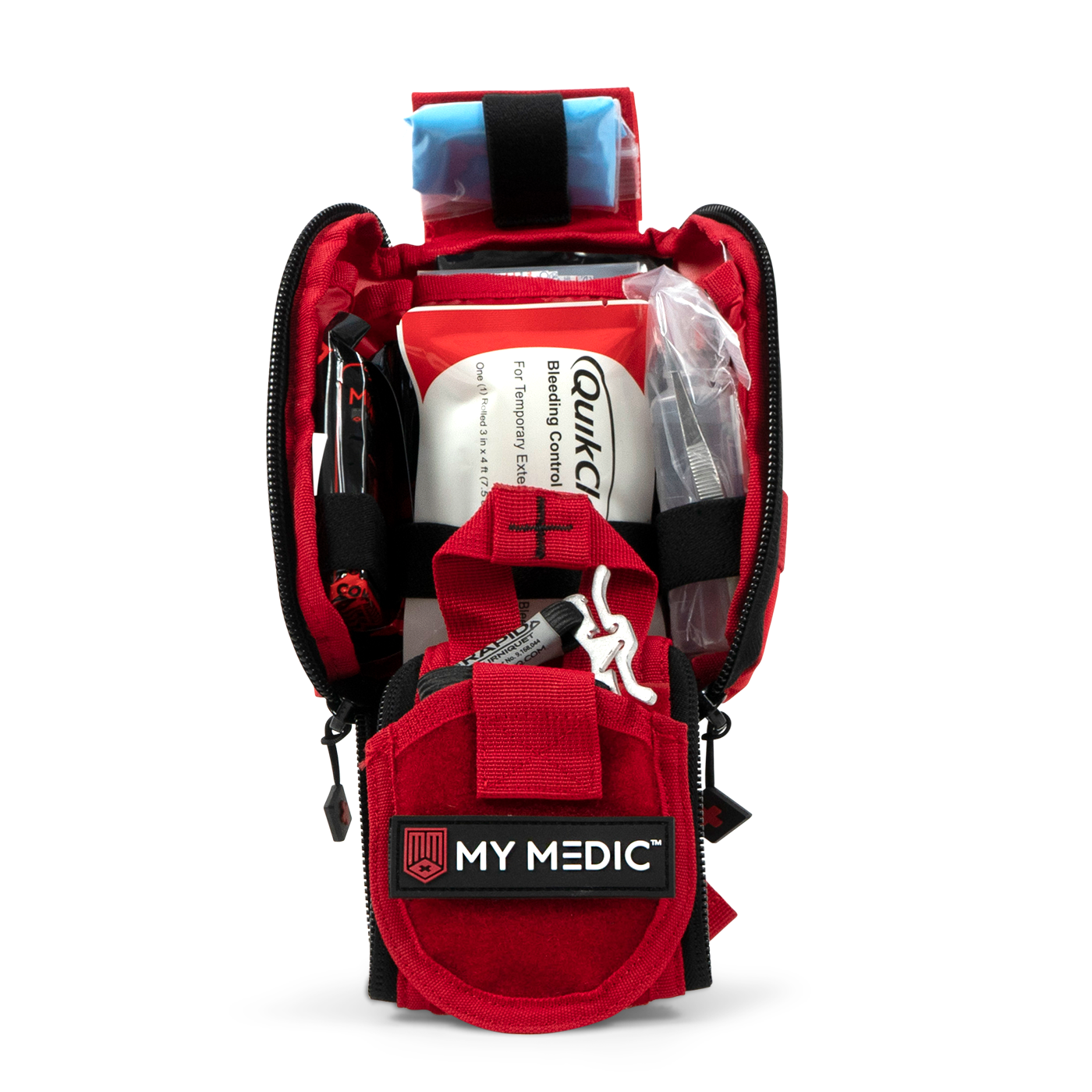 A micro trauma kit packed with essential life-saving supplies. Designed by medical and firearm professionals, a first aid kit perfect for hunting, the gun range, your car, and more.