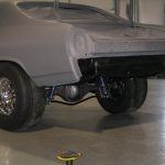 “When I began this build, my goal was to build a non-tubed, big tire car with top shelf suspension, so thats what I kept in sight. All the trim, grille and light bezels are original, brought back to life with extensive buffing. Bumpers  are original but re-chromed. The frame and under carriage is as clean as the body I took it all down to bare metal are coated and sealed it in chassis black and sealer.”