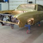After getting the car to his personal garage at his home, he knew that this was going to be a complete tear down and that years of work lay ahead. “While I have done other ’69 chevelles in the past, this one was just over the top with a high end budget.” Casey added, “I do customer cars as well and always have at least 3 other personal projects going on at all times, so I took my time on this one, 2.5 years to be exact.” Before spending a year on the rotisserie, the Chevelle needed major body work, leaving Casey with the tedious task of hand sanding the Chevelle to get everything clean and balanced. “I replaced the passenger side rear quarter panel and the lower wheel well on drivers side,” said Casey. After Performing hours upon hours of body work, I asked Casey what the hardest part was for him. “Block sanding the car six times was the hardest part. When I finally got the primer on, that was a milestone!”