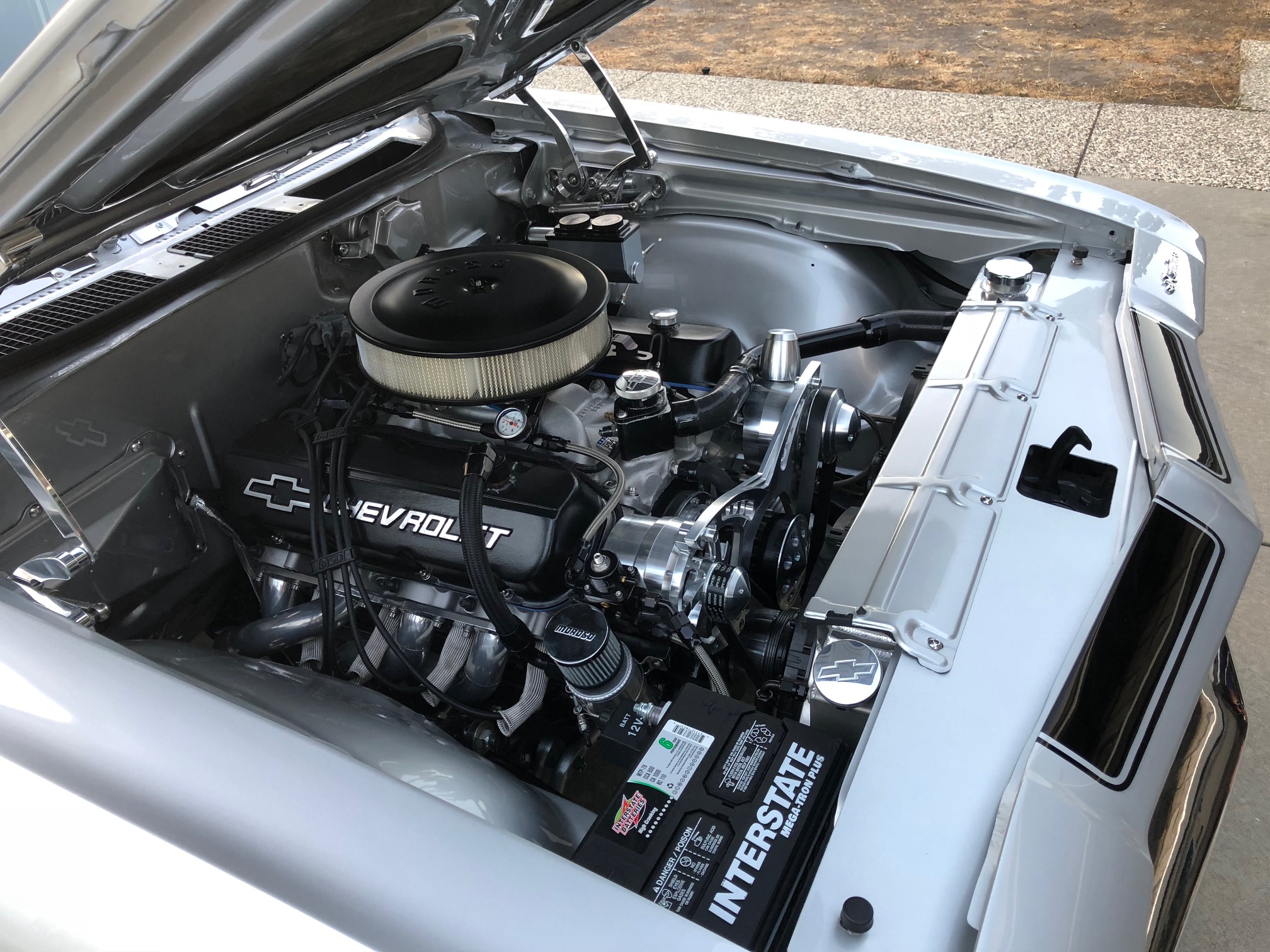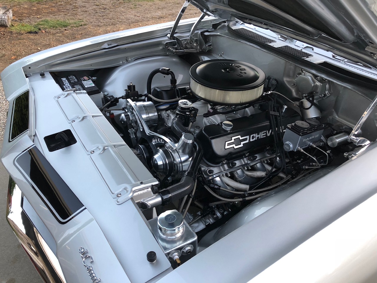 Danny knew that dispite all the extensive fabrication work such as custom lemon headers, an American Autowire harness kit, a restomod dash and some Intro wheels, that he wanted to keep the original SS hood. To accomplish this, he used a duel plane intake for clearance. And with these awesome improvements it is no wonder that when he entered it in the Goodguys car show in November 2018, the El Camino won an award.