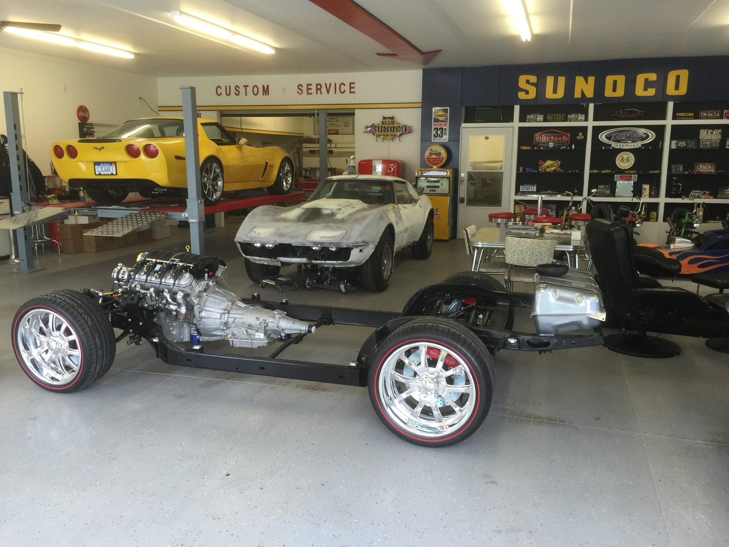 In short, this car is a hell of an achievement. It’s gone from being a completely stock Corvette (in bad condition back in the 80s) to a beautiful, fast, award-winning restomod. Jeff’s not a one-car man either, having also restomodded a ’68 Chevelle SS. Speaking to him, what came through was a love of cars: while he prefers custom and restomod cars as a rule, he likes them all. I think that’s the handle. It’s impossible to update a car like this, retaining the original’s soul, without having a deep love for cars. That care is perhaps the most important component, beyond anything mechanical. If you want to see more of the car, including pictures of the build process, scroll on down.