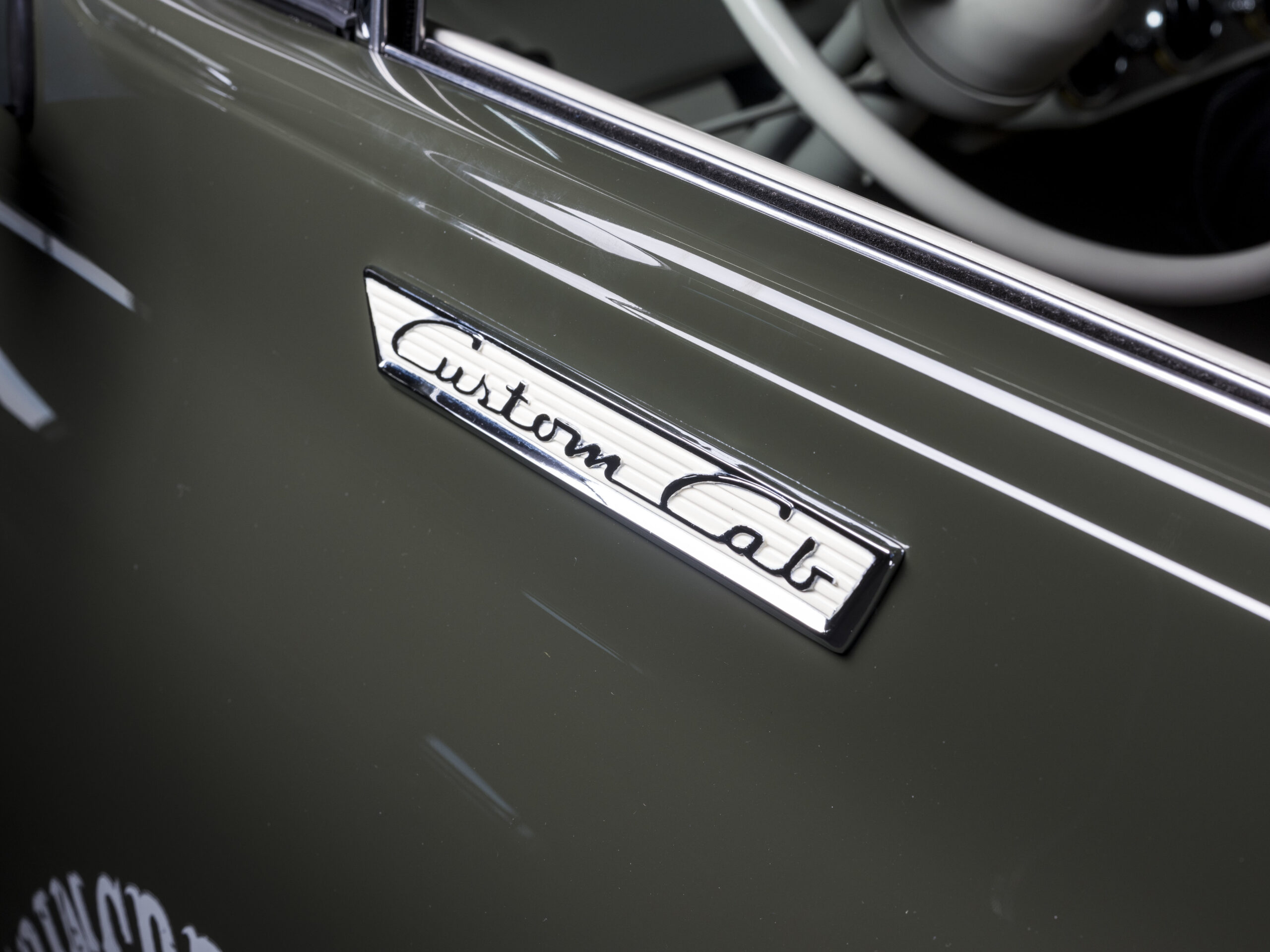 The truck’s mixed heritage is also evident in its design. While the cab is from a 1956 F100, the 1954’s chunky grille still remains afixed, and the bumpers below it are fully-custom chrome beauties. The running boards are also completely custom, while the original doors have had their edges rounded. Inside the cab, you’ll find an array of modern amenities including a Kicker stereo, new gauges, and Vintage Air.