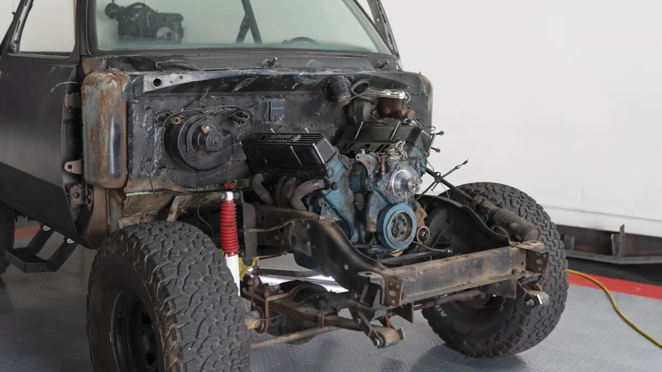 After a complete assessment, we added a Speed Master top-end kit, which includes a bigger cam, aluminum heads, and a high-rise intake. We’re aiming to boost this engine’s horsepower to somewhere between 460 and 500, so it’s got all the power you’d expect from a RestoMods build. We upgraded the front accessory drive with a CVF setup, added a fresh radiator, and fully rebuilt the transmission and transfer case, transforming the drivetrain from all-wheel drive to selectable four-wheel drive. This will give the future owner and Youtube giveaway winner more control, whether they’re cruising down the highway or taking it off the beaten path.