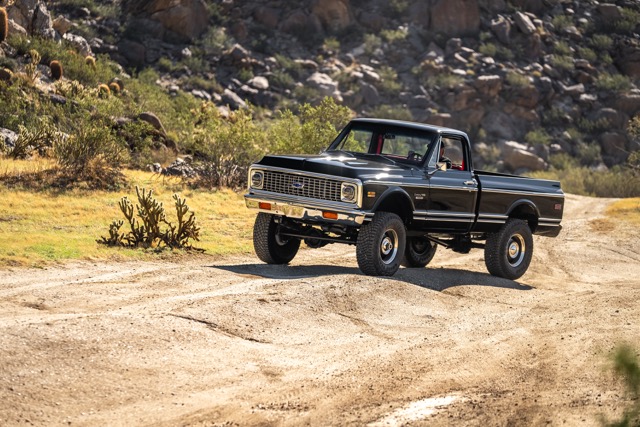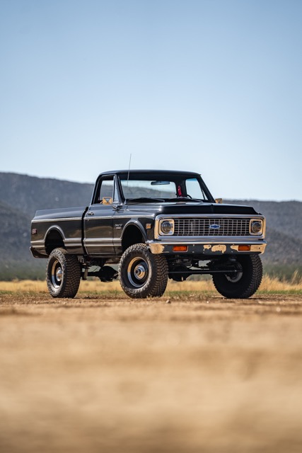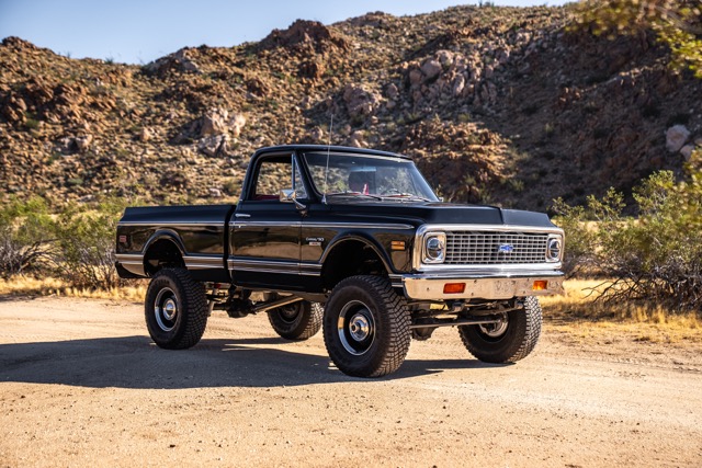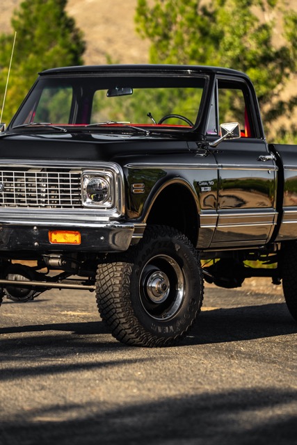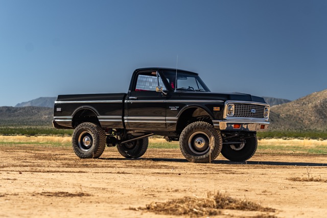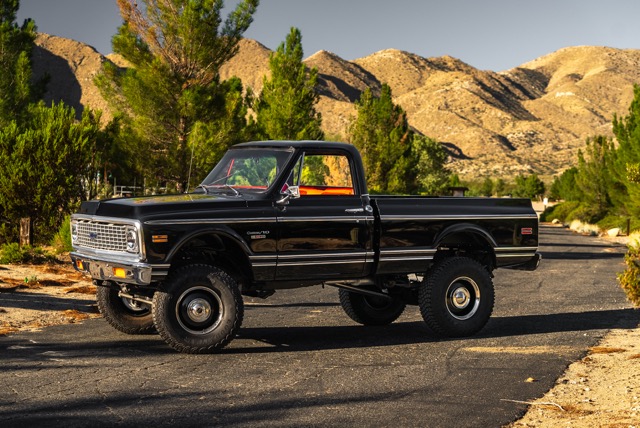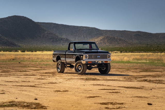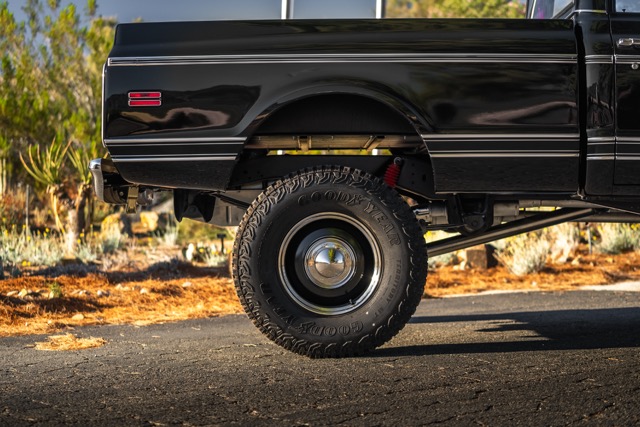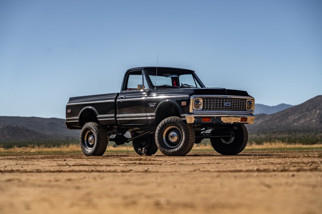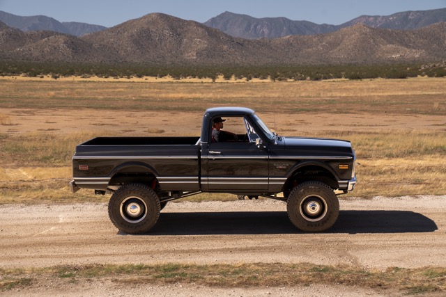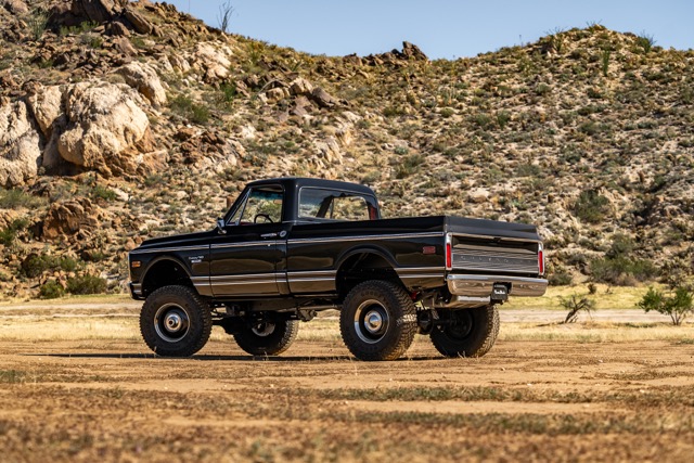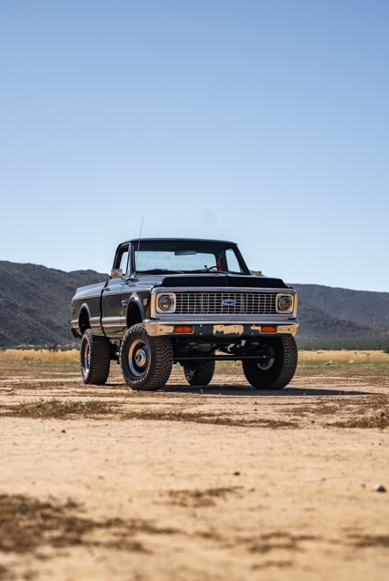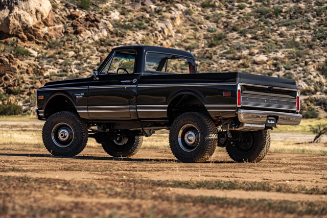 Never before in RestoMods sweepstakes history have we given away a lifted 4×4 classic truck, and because we’re always pushing the boundaries of what we build and give away here at RestoMods, we are bringing you this tough as nails restomod: a 1972 Chevy K10 4×4 Shortbed pickup. Shortbed C10s are rarer than longbeds. Back in the day, laborers and farmers alike would often choose the longbed configuration of the Chevy truck because more bed space was more practical. This was especially true for the 4×4 K10, because if you were working out in the rough and needed to haul in larger loads, the longbed was something you couldn’t live without. So in a way, this K10 is a true survivor because not many 4×4 shortbed trucks were sold and for those that were lived hard lives; many seeing their demise in fields and junkyards.