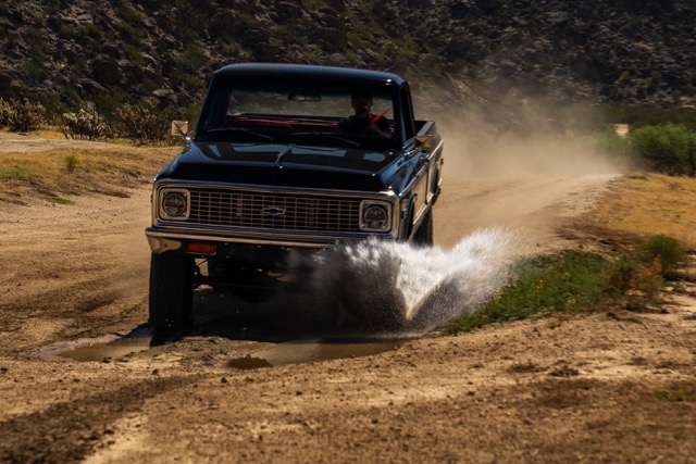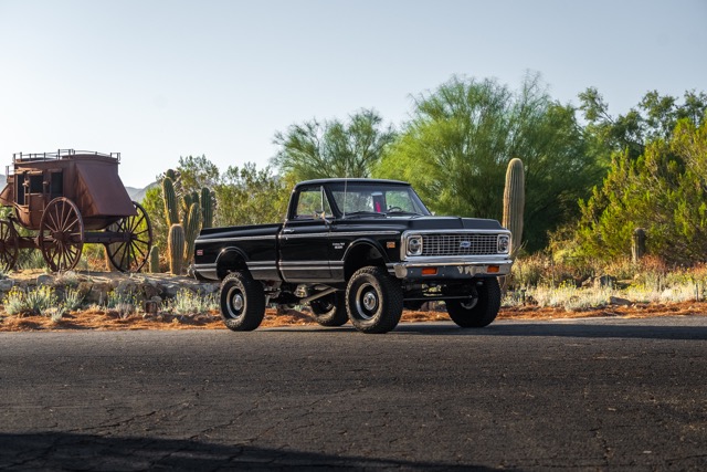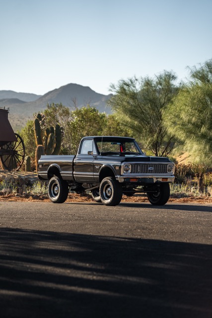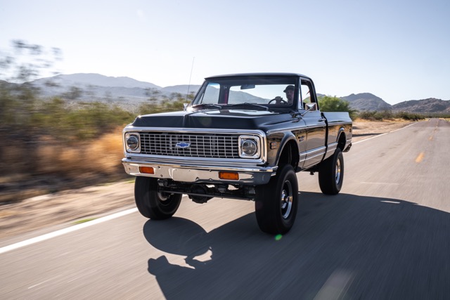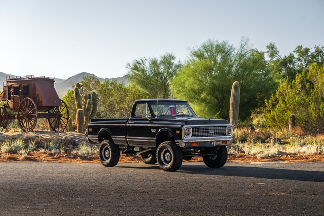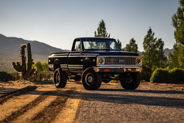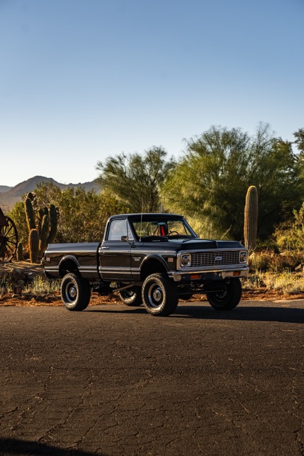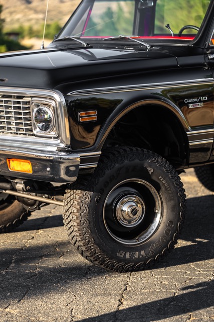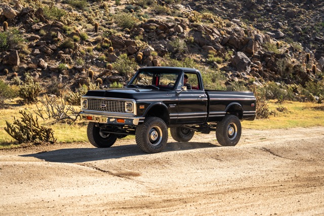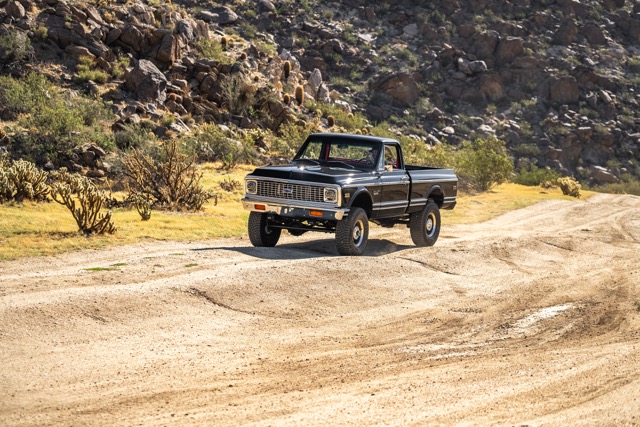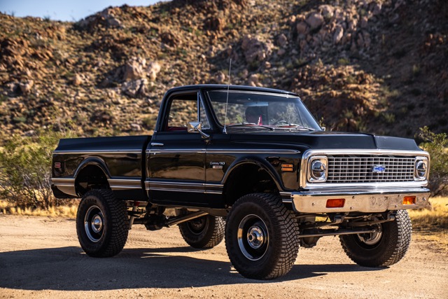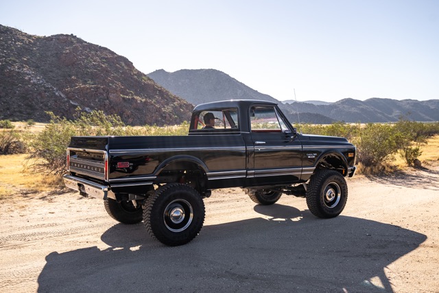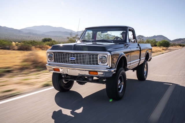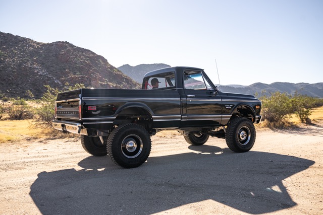 Never before in RestoMods sweepstakes history have we given away a lifted 4×4 classic truck, and because we’re always pushing the boundaries of what we build and give away here at RestoMods, we are bringing you this tough as nails restomod: a 1972 Chevy K10 4×4 Shortbed pickup. Shortbed C10s are rarer than longbeds. Back in the day, laborers and farmers alike would often choose the longbed configuration of the Chevy truck because more bed space was more practical. This was especially true for the 4×4 K10, because if you were working out in the rough and needed to haul in larger loads, the longbed was something you couldn’t live without. So in a way, this K10 is a true survivor because not many 4×4 shortbed trucks were sold and for those that were lived hard lives; many seeing their demise in fields and junkyards.