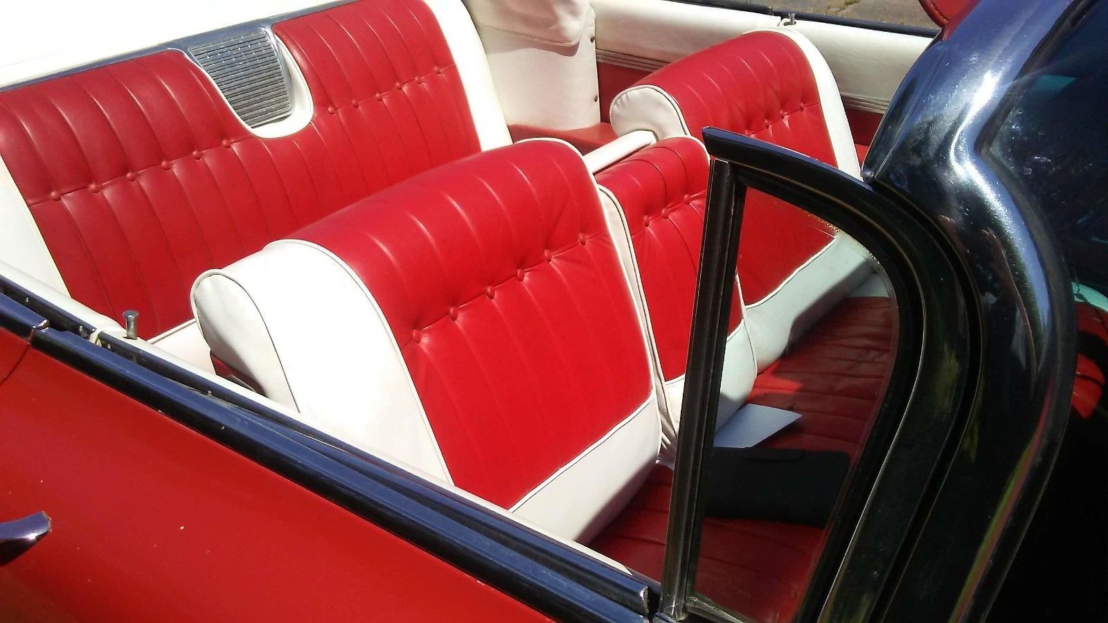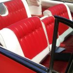 The car already has A/C, power seats, locks, and windows. Beyond checking that they’re working, you don’t need to do anything to them. The interior looks to be in very good shape too, boasting a beautiful red and white color scheme. However, we’d add air ride suspension, and replace the old 390 motor with something with more oomph. Maybe a modern LS3, or the Northstar from an STS-V.